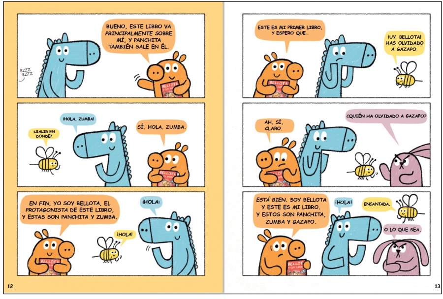 Te presentamos a Bellota, un cerdito muy simpático y curioso. Este libro va sobre él. Y también sobre Panchita, su mejor amiga. Y sobre Zumba. Y sobre el gruñón de Gazapo.