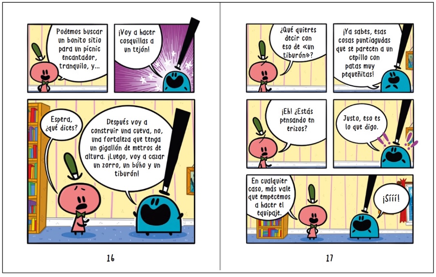 Este es un cómic tremendamente divertido, curioso y original para los más peques de la casa (a partir de 6 años), todo lo contrario a lo que su título nos indica. Hace honor a su nombre: una historia tópica, unos personajes aburridos... Pero resulta que hay unos curiosos seres atrapados en el libro que intentarán llamar la atención de los lectores y cambiar el rumbo de la narración. ¡Ojo!, está lleno de faltas ortográficas, a propósito, porque los lectores pueden ir a la caza de estos errores.