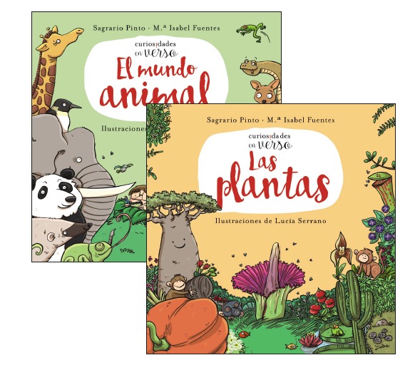 Hay dos títulos de esta colección que se refieren a la naturaleza. Uno es el de Las plantas y el de El mundo animal. Versos sencillos y ocurrentes nos desvelan curiosidades del mundo de las plantas y de los animales. Hay gigantes con ramas y otros que son enanitos... ¡como salidos de un cuento! Algunas plantas se esconden, otras trepan sin cesar... Hay flores que son hermosas; pero, huelen fatal. Los colmillos de elefante son unos dientes muy largos y el tiburón tiene tantos que nadie quiere contarlos. La enorme ballena azul guarda un corazón gigante y en el pulpo laten tres; aunque, claro, ¡no tan grandes! Hay animales que brillan, otros que cambian de piel y los hay muy caprichosos a la hora de comer. Y si quieres saber más, abre el libro y... ¡ya verás!