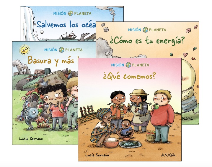 Una colección dedicada a los objetivos de la Agenda 2030 de Naciones Unidas para un desarrollo sostenible. Salvemos los océanos trata de objetivo 14, el de vida submarina, con el que aprendemos a conservar y utilizar sosteniblemente los océanos, los mares y los recursos marinos para el desarrollo sostenible. ¿Qué comemos? se refiere al objetivo 2, hambre cero y la importancia importante saber de dónde proceden los productos que comemos. Basura y más basura nos da ideas para reducir el consumo, reutilizar y reciclar mejor para cuidar nuestro planeta. Es el objetivo 12, el de producción y consumo responsables. Y ¿Cómo es tu energía? que trabaja los objetivos 7, energía sequible y no contaminante y el 13, acción por el clima.