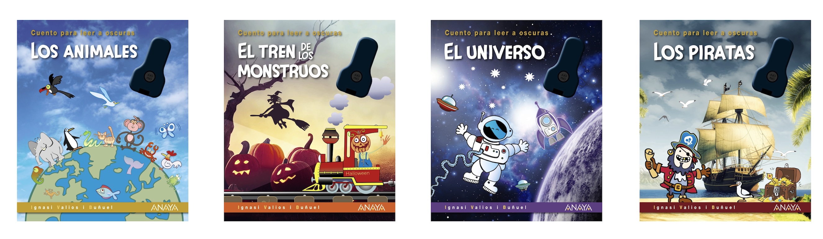 Nuestra colección de Cuentos para leer a oscuras siempre es un acierto. Originales y divertidos libros con los que los niños querrán irse a la cama (con la luz apagada). Descubre los animales, el universo, los piratas... iluminando las páginas con la linterna para leer el texto mientras se carga la tinta luminiscente, y apagándola a continuación para que brillen los dibujos en la oscuridad.